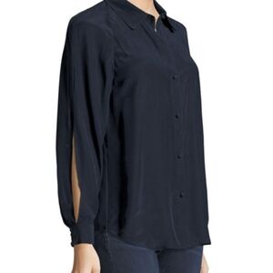 Frame Navy Slit Sleeve Matte Silk Blouse