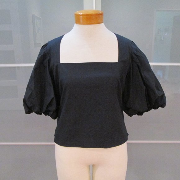 Frame "Nina" Cropped Puff Sleeve Blouse