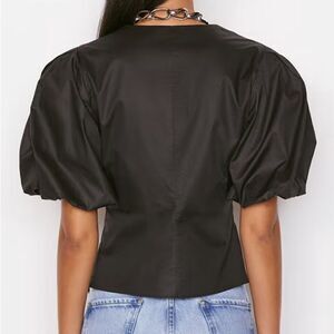 Frame Noir Black Puff Sleeve Tie Neck Top Size Large NWT