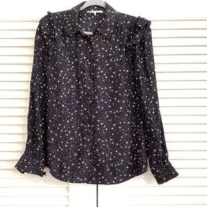 Frame Noir Diamond Sky Star Print 100% Silk Shirt Size S $289 Ruffle Button Down