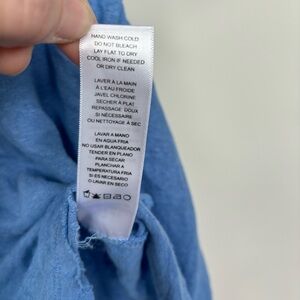 Beautiful dark periwinkle color, distressed hem, size tag is missing but measures as an oversized S or a M, great condition!