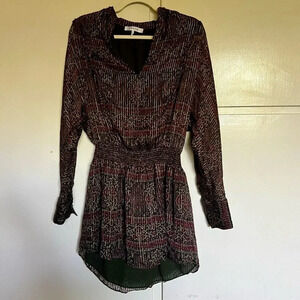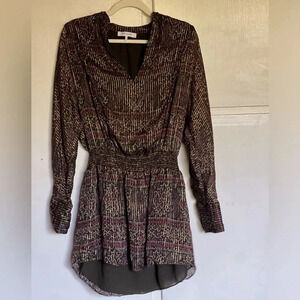 Frame Paisley Metallic Silk Long Sleeve Mini Dress Size Small