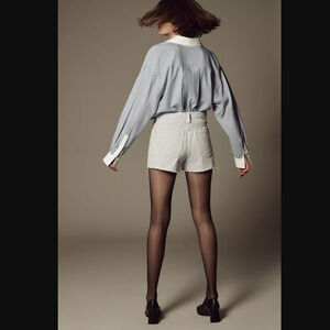Measurements: 12" rise, 3.5" inseam, 26" leg opening, 19.5" waist.