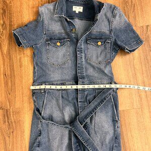 Frame Pleated Coverall Short Romper Button Front Playsuit Stretch Denim Maxson M