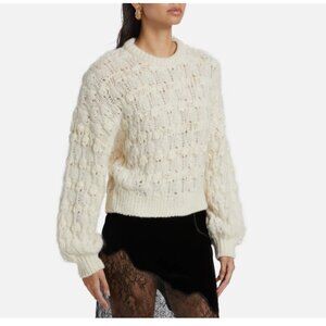 Crafted of wool, Frame’s textured Popcorn sweater is designed with a crewneck, long blouson sleeves, and rib-knit trim.