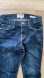 Front and back pockets. Light fading and whiskering with destroyed detail.
