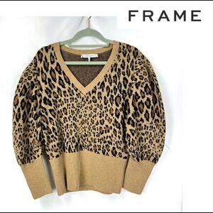 Frame Pullover Sweater Size Small Brown Cheetah Leopard Wool Blend