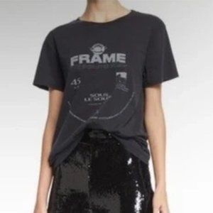Distressed graphic by Frame Denim in dark charcoal, almost black. Excellent like new condition. No stains, flaws or notable signs of wear. 100% cotton Measurements approximately 17" pit to pit, 25 " long Pair with Olivaceous pants I have listed to match this look.