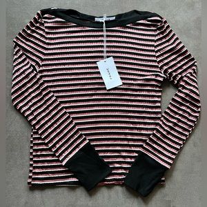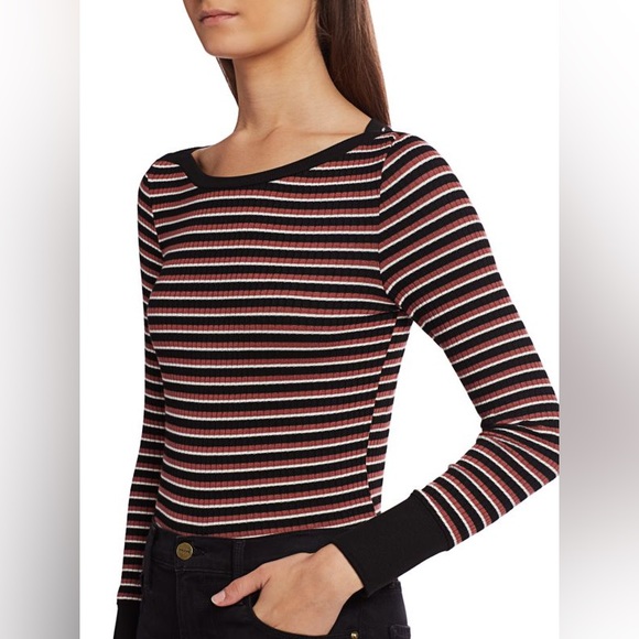 Assorted stripes in a ribbed texture with a bateau neckline make this your go-to long-sleeve tee.