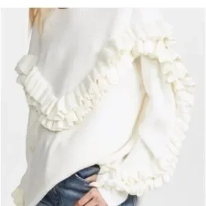 Frame Ribbed Ruffle Wool Blend Sweater Ruffle Slouchy