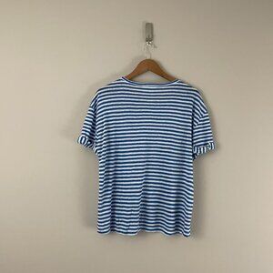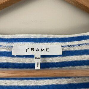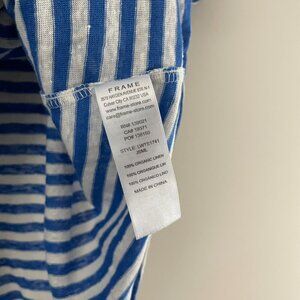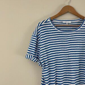 Frame Rolled Sleeve Organic Linen Stripe Tee in Jet Stream Size Medium
