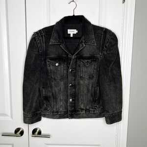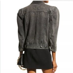 Frame Rosette Denim Jacket with Puff Sleeves in Ozone Black Size Large $378