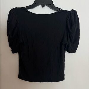 New without tags and never worn this black blouse has stylish ruching and is very flattering. Perfect for versatile wear.