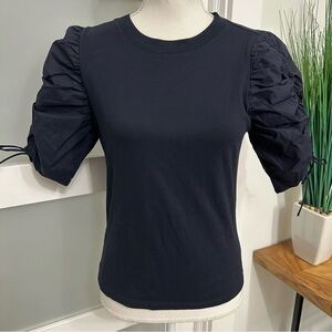 Frame Ruched-Sleeve Tee SZ Small Navy Blue Designer Classic Minimalist EUC