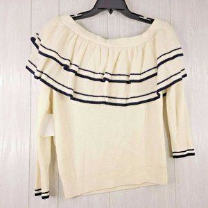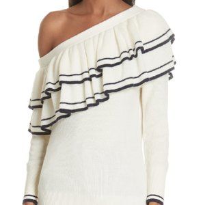 Frame Ruffle One Shoulder Wool Blend Sweater Womens Off White Multi Pullover
