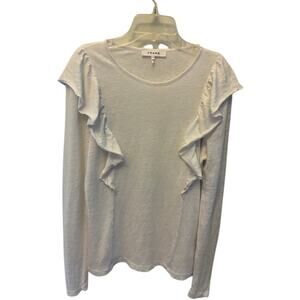 Frame Ruffle Shoulder Long Sleeve White Tee 100% Linen Women Medium EUC