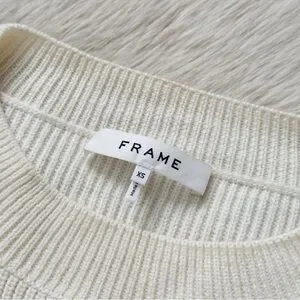 Frame Ruffle-yoke Ribbed Sweater In Off White