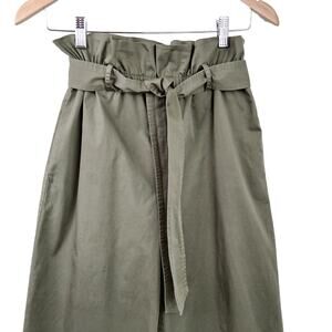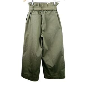 Frame SZ S Paper Bag Cropped Wide Leg High Rise Trouser Deep Army Green $260