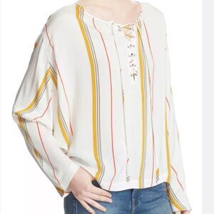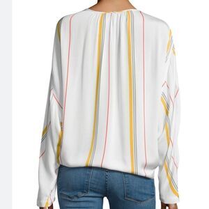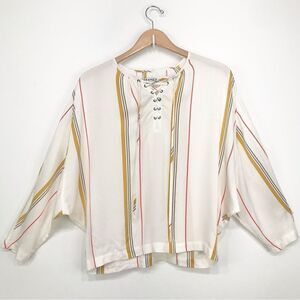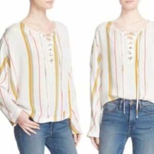 Frame Saffron Summer Stripe White Silk Blend Lace Up Blouse