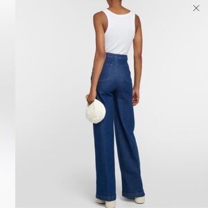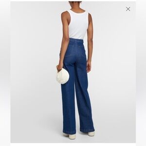 Frame Sailor Snap High Rise Wide Leg Jeans Denim Dark Wash Blue Adele