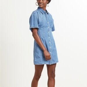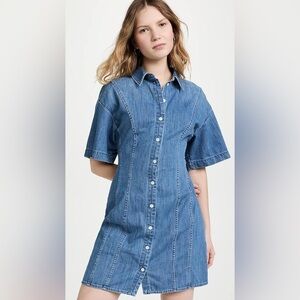 Frame Seam Detail Denim Mini Dress in Shoreline Wash