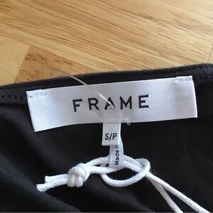 Frame Shirred Flounce Top Short Flutter Sleeves Black Cropped Size Small
