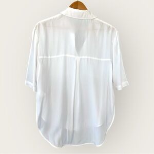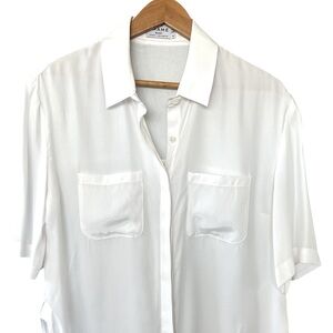 Like new! Frame Denim short sleeve 100% silk button down top in blanc white