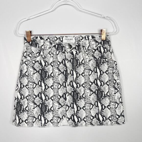 Frame Size 26 Le Mini Python Denim Skirt White Black Snakeprint Womens Cotton