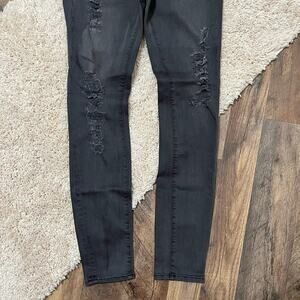 Dark gray, distressed, mid rise, skinny