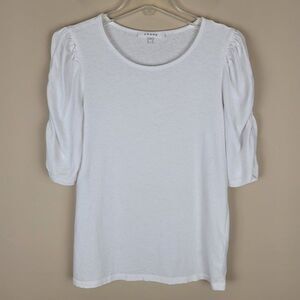 Frame Size L Ruched Sleeve Top Half Sleeve Cotton Blanc White