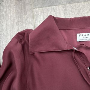 Frame Size Medium Maroon 100% Silk Button Down Long sleeve Shirt Tie Detail