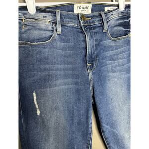 Frame Style 'Le High Skinny" Distressed Skinny Hi Rise Blue Jeans Denim Size 25