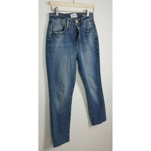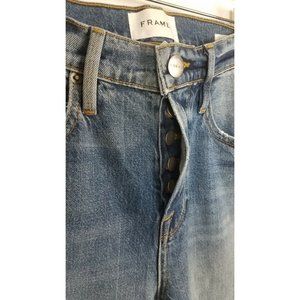 Frame Sz. 26 Le Original Skinny Mix Pocket Button Fly Jeans Raw Hem Rambla Rock are in gently used condition. Only worn a couple of times. Smoke free, pet free home.