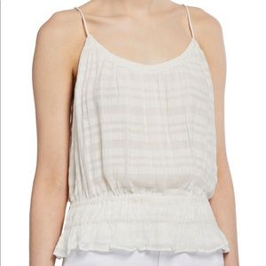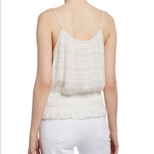 Frame tank in tonal stripes with smoked panel. Fully lined. Viscose/Cotton/Virgin wool/ Spandex.