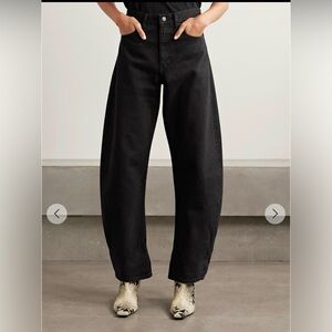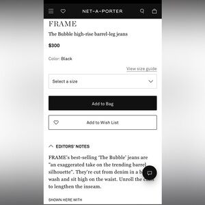 FRAME's best-selling ‘The Bubble’ jeans are "an exaggerated take on the trending barrel silhouette". They're cut from denim in a black wash and sit high on the waist. Unroll the cuffs to lengthen the inseam.
