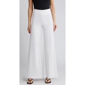 Frame The Jetset Wide Leg Pull-On Jeans in White Stretch Denim.