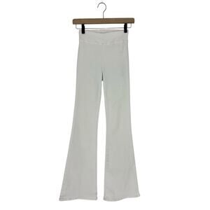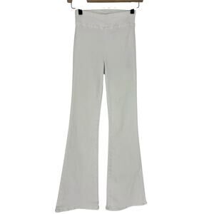 These are authentic Frame The Jetset Wide Leg Jeans in crisp white stretch denim, crafted with an ultra-flattering high-rise pull-on silhouette and a sleek, minimalist design. Made without hardware or pockets, this lightweight pair was designed with travel comfort in mind, delivering a second-skin fit and maximum stretch. The flared wide-leg cut elongates the silhouette while the sustainable fabric blend ensures all-day ease and movement. A versatile, elevated essential for resort styling, casual days, or on-the-go wear.
