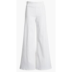 Frame The Jetset Wide Leg Pull-On Jeans in White Stretch Denim.