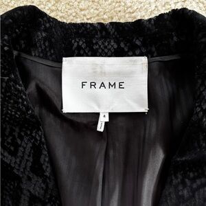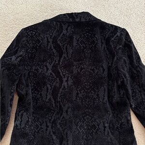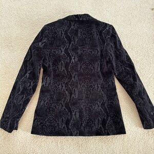 Chic and stylish blazer by Frame Denim. Features a dark, velvet snake python pattern. Ideal for a polished look. Make me an offer!