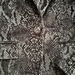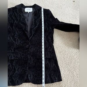 Chic and stylish blazer by Frame Denim. Features a dark, velvet snake python pattern. Ideal for a polished look. Make me an offer!