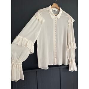 Frame Victorian Ruffle Silk Semi Sheer Button Blouse Off White Size Large