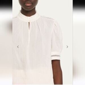 Frame White Linen Blend Short Sleeve Inset Lace Ruffle Collar Top NWOT Sz Large