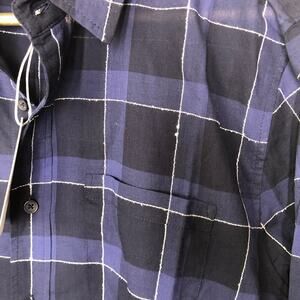 Frame Cotton Windowpane Plaid Classic Fit Button-Up Shirt in Navy Multi Size S