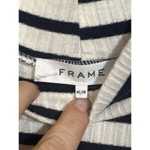 Frame Womens 70s Striped Ribbed Long Sleeve Mock Neck Top White & Navy M