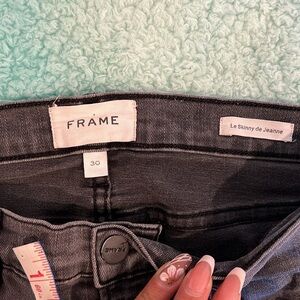 Experience the perfect blend of style and comfort with Frame Denim's black ankle cropped jeans. These jeans feature a sleek silhouette that effortlessly complements any outfit. Crafted from high-quality denim, they offer a modern fit that is both flattering and versatile for various occasions.