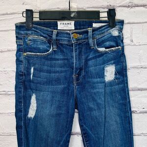 Frame Womens Blue Denim Raw Hem Hilltop Le High Skinny Jeans Medium Wash Size 24