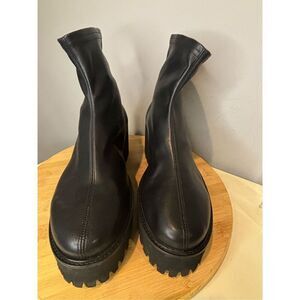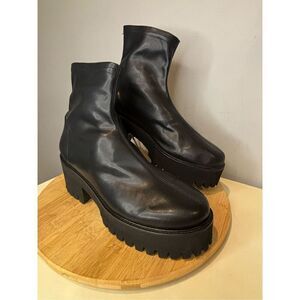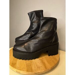 Frame Women's Le Croyden Leather Lug Sole Platform Ankle Bootie Black Size 42