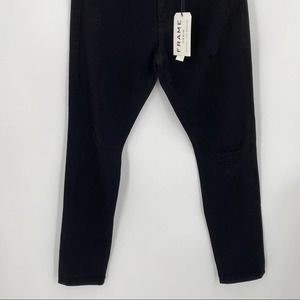 Frame Womens Le Garcon Rip Noir Jeans Size 27 Black Distressed Straight Leg