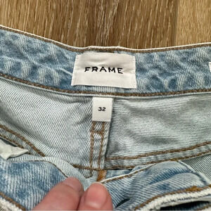 Frame Women's Le Grand Garcon Shorts Light Wash Denim with Raw Hem Size 32 GUC