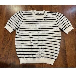 Frame Women's Short Sleeve Cotton/Linen Blend Sweater Striped Sz Small Timeless